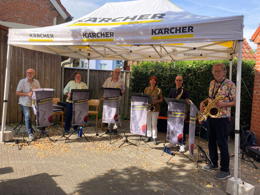 Mit einer kleinen Besetzung unseres PopRock-Ensembles haben wir bei super schönem Wetter die Aufstellung des Maibaumes begleitet.